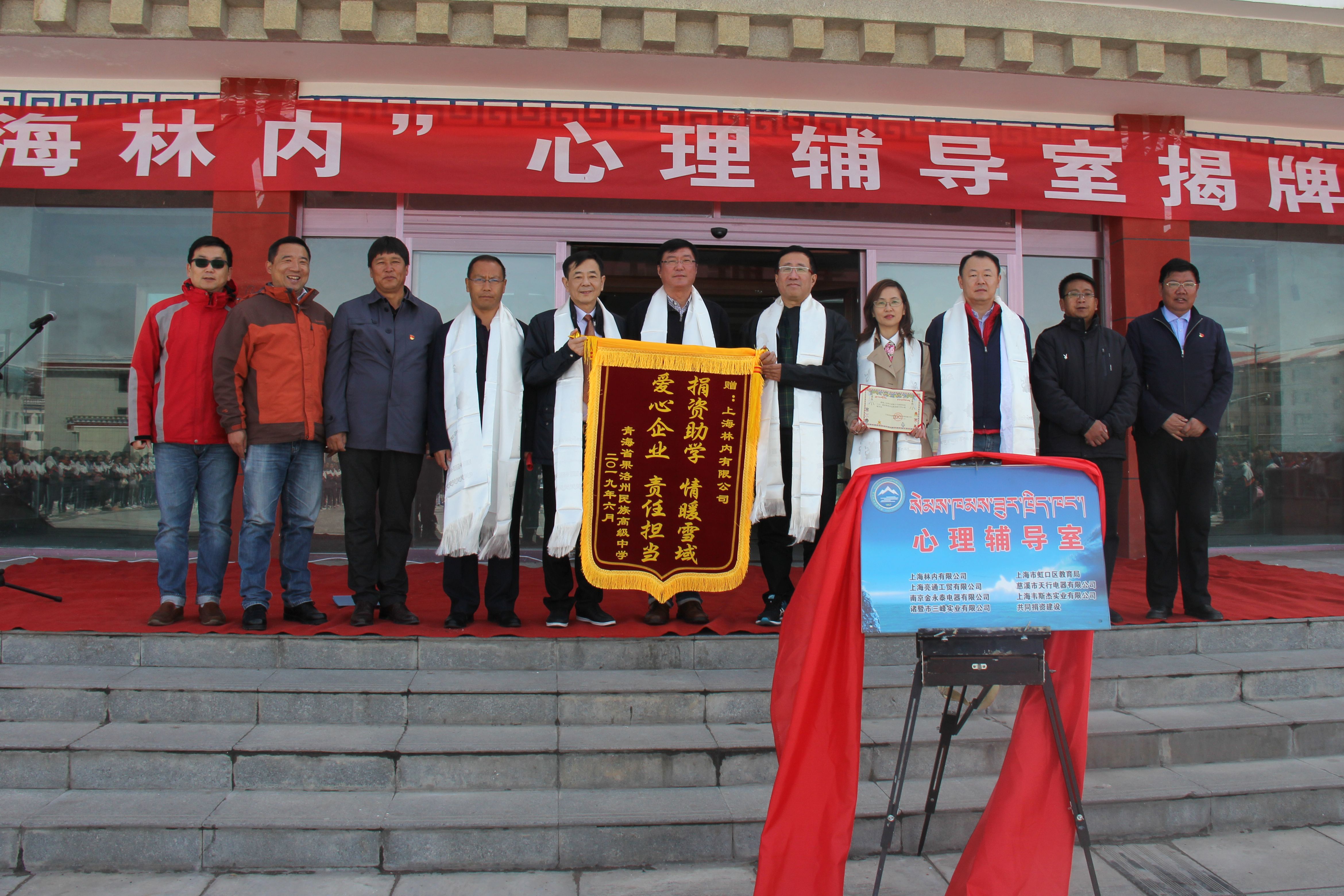 2019年6月1日,孩子們的節(jié)日,上海林內在這一特殊的日子里,來到青海省果洛州民族高級中學,為林內發(fā)起捐款資助的“上海林內心理輔導室”舉行揭牌儀式。上海燃氣集團黨委書記、董事長王者洪先生,上海林內副總經理陳光杰先生等捐助單位領導和果洛州政府相關領導出席。為孩子們建立心理輔導室,在城市學校已司空見慣,而在偏遠山區(qū),物質生活貧乏,孩子們能入學讀書已屬不易。學習以外,他們還要分擔家務和農活,很多孩子還是留守兒童,缺少父母的關愛。在原本無憂無慮的花季年華,卻承擔著許多與年齡不符的重壓。走進孩子的心靈,和孩子心與心的溝通,培養(yǎng)他們進取、向上的健康心理,已成為社會各界愛心人士關注的方向。