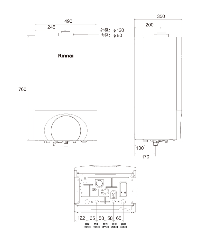 給排氣管直徑(mm) : φ120/φ80