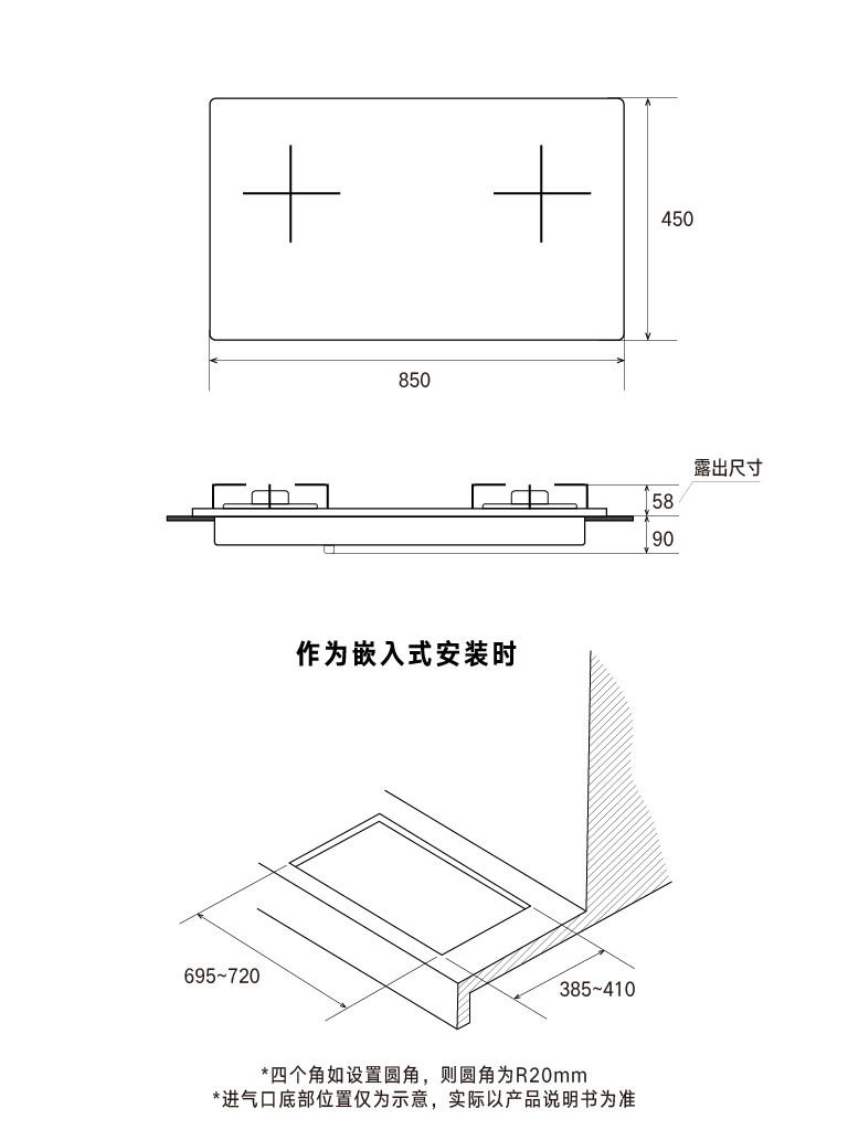 嵌裝開孔尺寸(mm) : (K7)(W)700×(D)400×R20